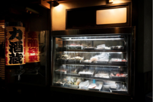 To keep the products at the right temperature, there are also temperature controls present. All these parts work together to make sure the items inside the case stay fresh and safe.